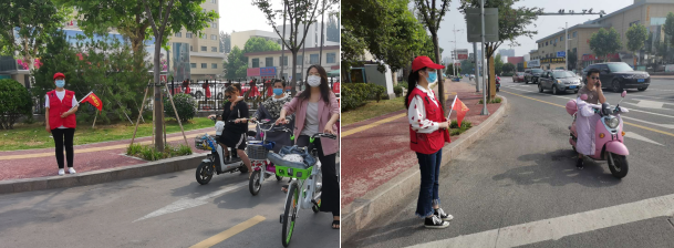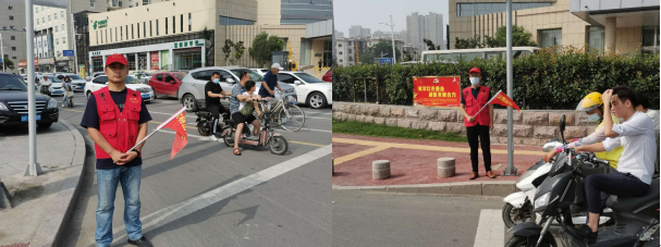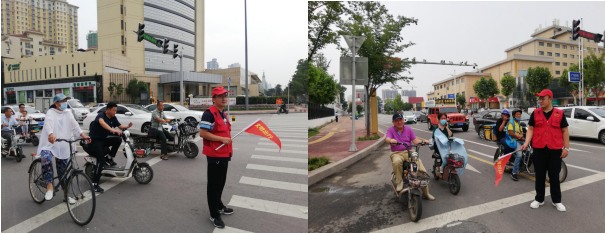 志愿者們在中華路與華英路交通路口開展文明交通勸導活動