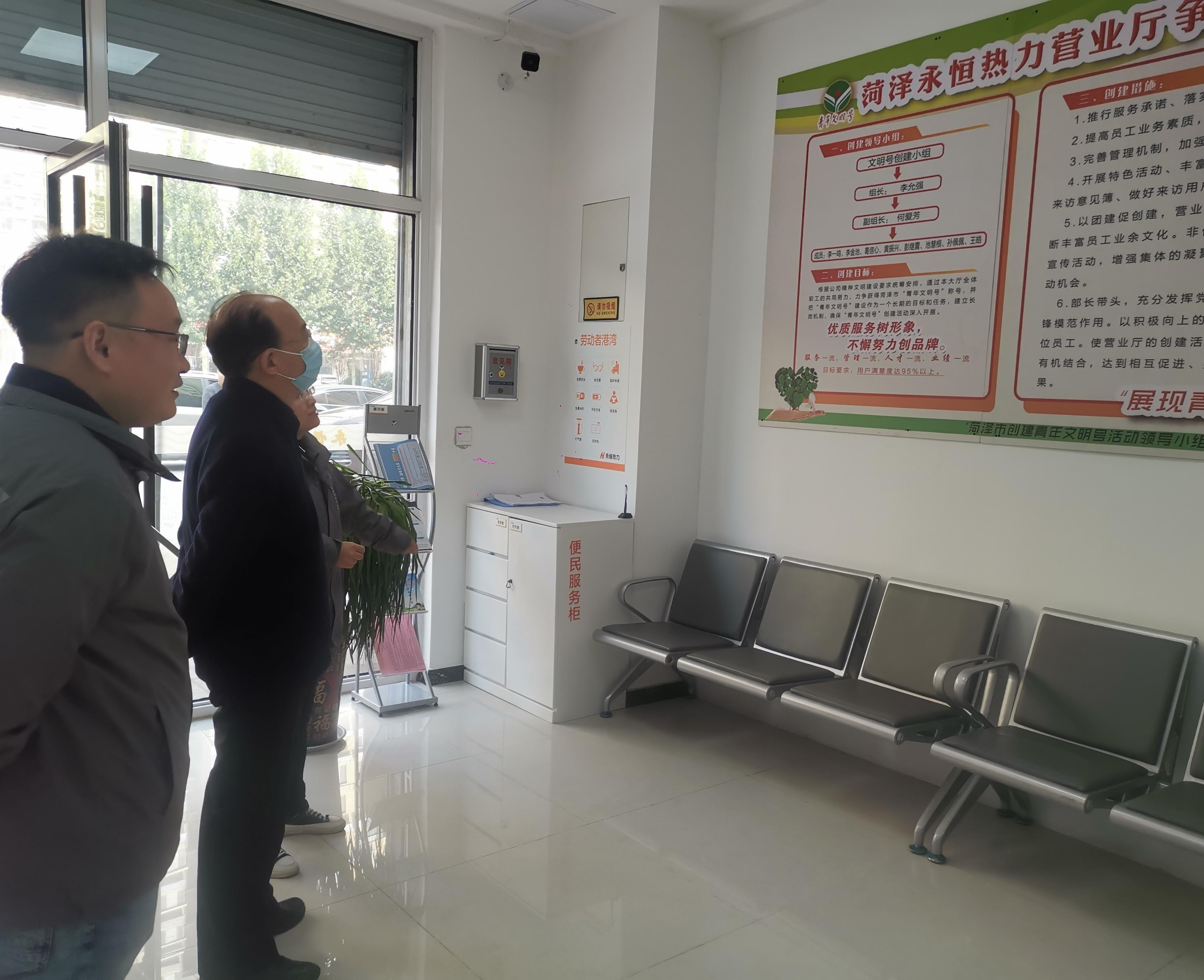 10月22日—24日,菏投集團(tuán)黨委書記、董事長(zhǎng)徐文芹分別到山東菏澤發(fā)電廠、永恒熱力公司服務(wù)大廳、龍翔·中央檀府換熱站等,現(xiàn)場(chǎng)協(xié)調(diào)、指導(dǎo)、調(diào)研供暖工作,集團(tuán)公司黨委委員、副總經(jīng)理,永恒熱力公司董事長(zhǎng)、黨支部書記肖培飛等陪同檢查。
